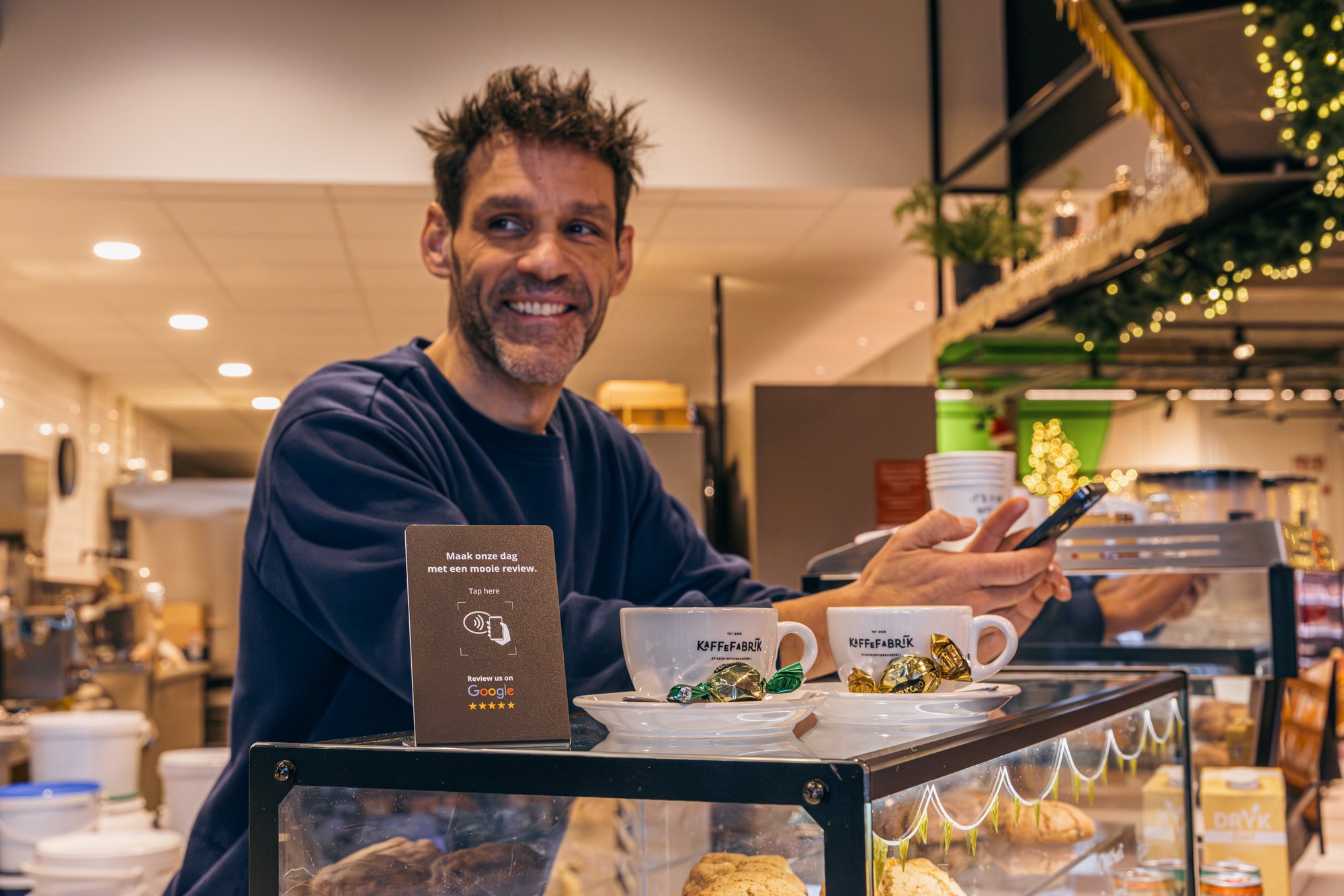 Zet je Happy Card neer op je toonbank of tafel en je kan meteen reviews verzamelen.